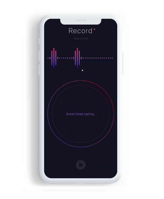 Creating the concept of our application we took into account all the user's pains and focused on its main needs. Opening the application, the user can get in just 2 clicks to the vibration settings, then by simply swiping a screen open the recording mode of his own rhythm. Also in 2 clicks from the main screen there are special sound signals which differ in their intensity and volume level in accordance with the degree of deafness of the user.
